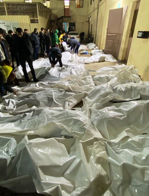 לתמונות יש פורסם ברשתות החברתיות המציגות שורות של גופות של קורבנות האירוע הנ"ל, מכוסות בשקיות לבנות, מול בית החולים. עולה כי אל-אקצא הונחו על הקרקע בדיר אל-בילה, מרכז עזה.