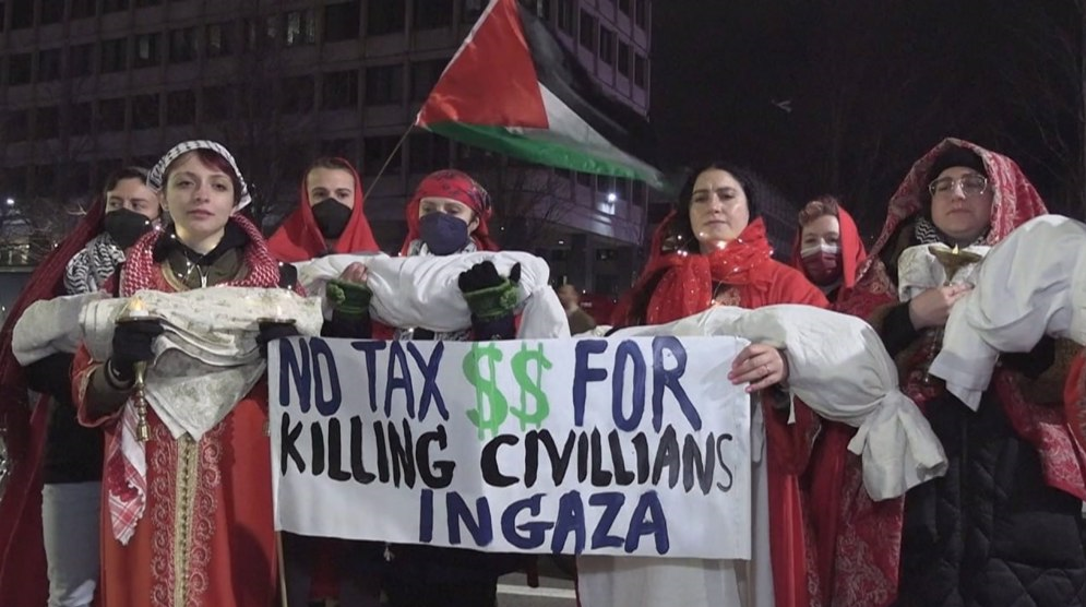 אלפי אנשים ברחבי ניו יורק אוחזים בדגלי פלסטין וכרזות עם סיסמאות כגון כמו "הפסקת אש, פלסטין חופשית" עשה זאת", "ישראל שופכת את דמם של ילדי עזה", "ישראל הורגת ילדים בעזה" דרשו הפסקת אש מיידית בעזה. מה שהראה את מורת רוחם מהתמיכה של ארה"ב בפעולות תל אביב נגד פלסטינים.