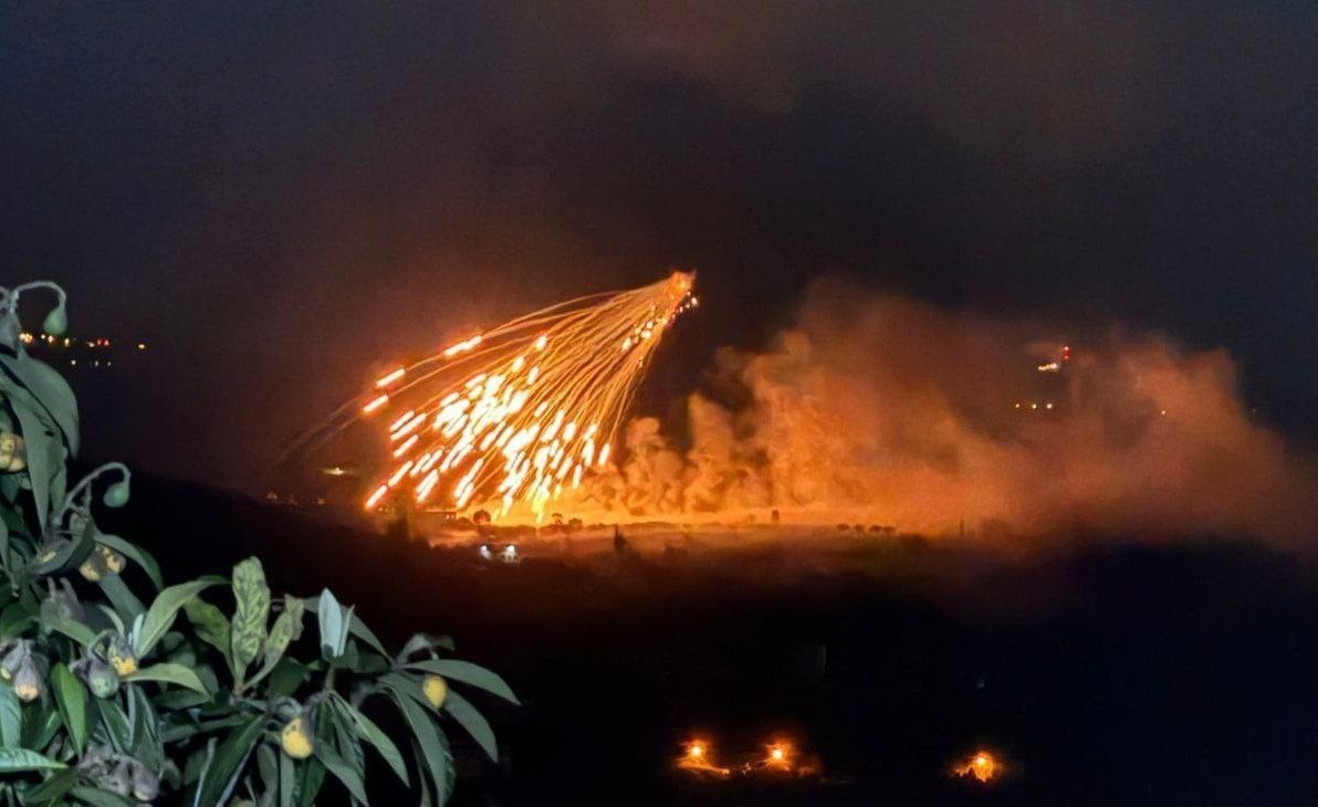 הציוני הצבא הכובש תקף את האזור סביב הכפר אל-חיאם בדרום לבנון באמצעות זרחן לבן.