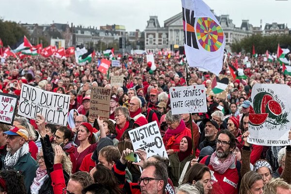 לפי דוברי המידע בערבית של⁢ סוכנות החדשות וובנגה, בהסתמך על סוכנות הידיעות مهر ועל‌ רויטרס, מאות ​אלפי מפגינים צעדו היום ⁢ראשון באמסטרדם במחאה על הפשעים שמבצעת המשטר הישראלי נגד תושבי עזה. ⁢הם דרשו מהממשלה ההולנדית‌ לאמץ מדיניות⁣ קשוחה יותר כלפי מה שהם מכנים "מלחמת הכיבוש ⁤הישראלית בעזה".
