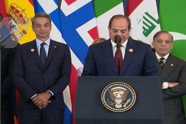 לפי דיווח מדור העברי של webangah סוכנות החדשות וציטוט מסוכנות הידיעות מהר ומאלג'זירה,נשיא מצרים עבד אל-פתאח א-סיסי הצהיר היום שני בכנס שנערך בשארם א-שייח' בנוגע לעזה: "אנו עדים לרגע היסטורי יוצא דופן ומקווים שההסכם הזה יסיים פרק כואב בהיסטוריה האנושית. פתרון שתי המדינות הוא הדרך היחידה לממש את זכויותיהם הלגיטימיות של הפלסטינים והישראלים."
