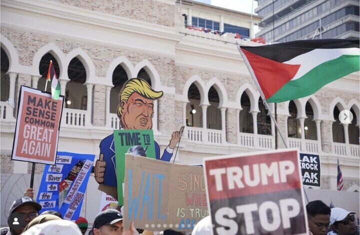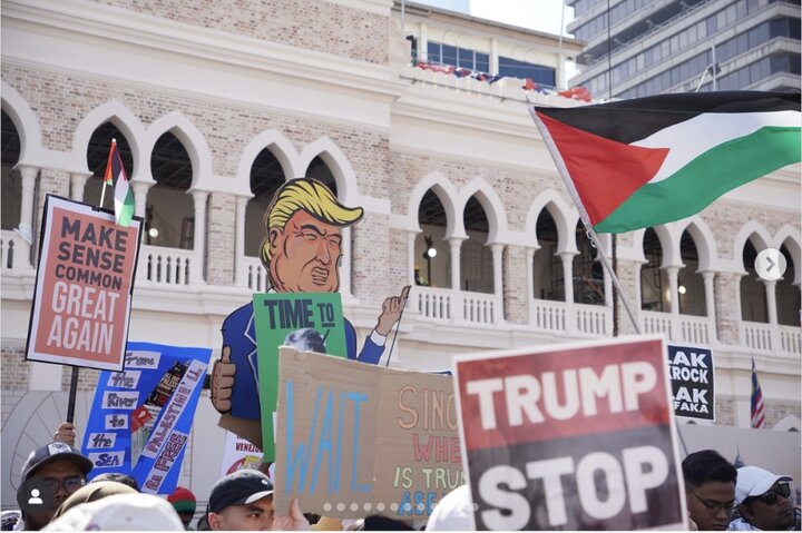לפי דיווח של סוכנות החדשות וובנגה בלעז, בהתבסס על דיווחים מסוכנות מֶהר ושל רושאטודי, תומכי פלסטין ומפגינים ממלזיה שהתנגדו למדיניותו של דונלד טראמפ, נשיא ארצות הברית, התכנסו בעת הגעתו לקואלה לומפור לצורך השתתפותו בפסגת איגוד מדינות דרום מזרח אסיה.