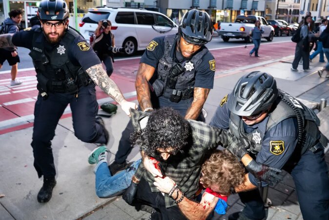 אחרי שהביעו את מחאתם כלפי מדיניות טראמפ והרפובליקנים, התעמתו סטודנטים בערב יום שני המקומי עם מארגני האירוע בקריאות "פשיזם החוצה". המשטרה האמריקאית עצרה לפחות שלושה אנשים.