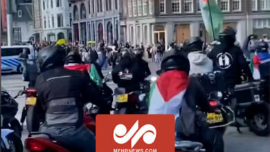רוכבי אופנוע הגיעו לרחובות והפגינו באמסטרדם, הולנד, לתמיכה בתושבי עזה המדוכאים . © Webangah News Hub תרגם את הידיעה הזו מהמקור של סוכנות הידיעות Mehr