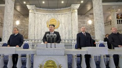 חשיפת קים של הטיל הבין-יבשתי החזק ביותר של צפון קוריאה בנוכחות מדבדב