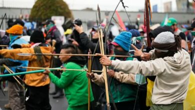 מפגינים קולומביאנים תקפו באבנים וקשתות את שגרירות ארצות הברית בבירת קולומביה כדי לגנות את מדיניות נשיא ארה"ב ולתמוך בפלסטין