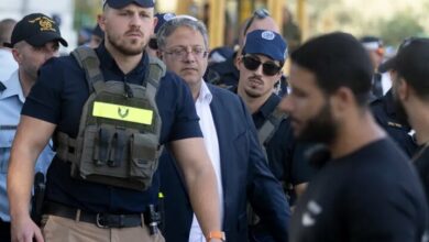 מפגינים פרו-פלסטינים מקבלים את בן גביר במטח בקבוקים