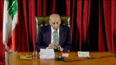 יושב ראש הפרלמנט של לבנון דחה כל נורמליזציה של היחסים עם המשטר הציוני והדגיש את עמדותיו בנוגע ליישום מנגנון הפסקת האש