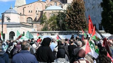 מצעד התמיכה ב"צי בינלאומי לחירות" החל מול מסגד איית'וספיה באיסטנבול במטרה להתנגד לרצח העם של הציונים בעזה ולשבור את המצור על הרצועה