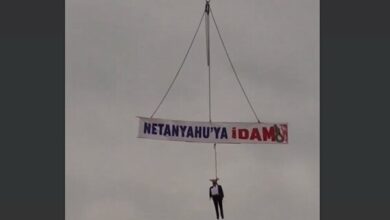 שלט עם הכתב הוצאה להורג לנתניהו על מנוף בטראבזון טורקיה סרטון