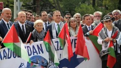 התקבצות עממית במחוז מוגלה בדרום-מערב טורקיה התקיימה בתמיכה בצי הסיבולת העולמי; אנשים בכיכר הרפובליקה החזיקו דגלים של טורקיה ופלסטין וקראו סיסמאות לתמיכה בפלסטין