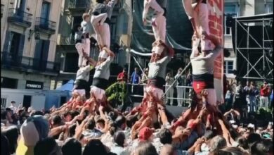 בהפגנה נגד ציונות בברצלונה הונף דגל פלסטין באמצעות "פירמידה אנושית